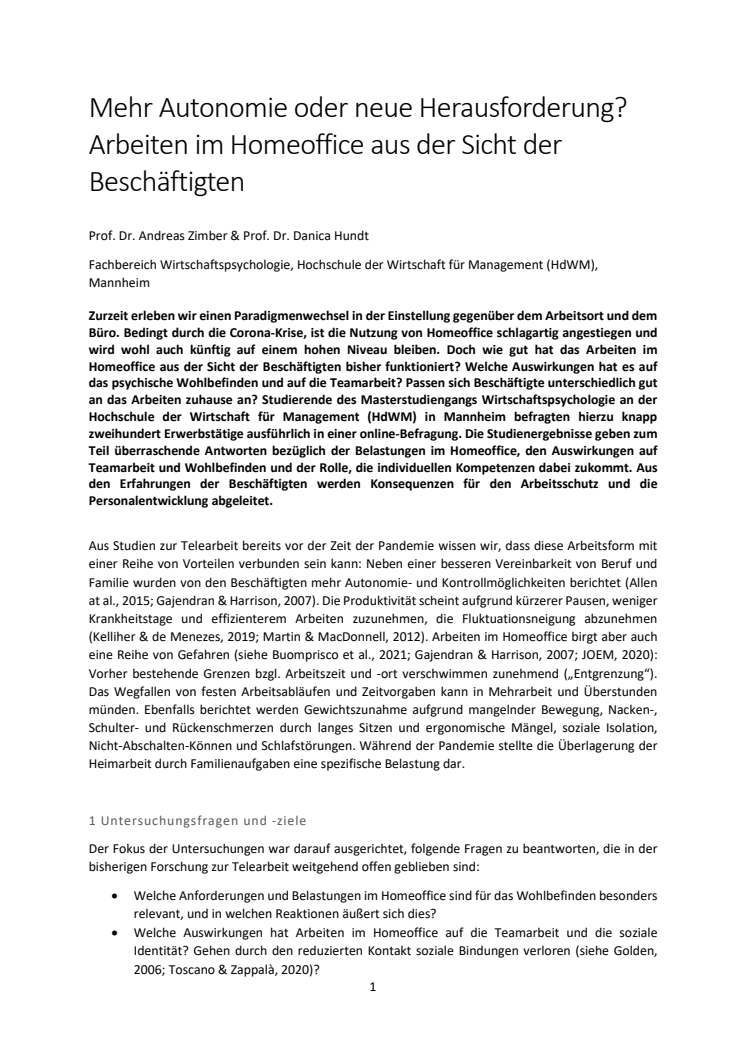 - Prof. Dr. Andreas Zimber & Prof. Dr. Danica Hundt, Hochschule der Wirtschaft für Management (HdWM)
