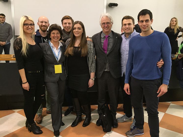 (v. li) Linda Löffler, Konstantin Kropp, Prof. Dr. Dolores Sanchez Bengoa, Wilhelm Keller, Nicole Ernst, Prof. Dr. Hans-Rüdiger Kaufmann, Julian Hochscheid, Christian Rueckold.