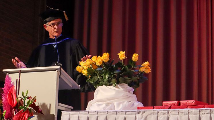 Der Abschluss des Studiums ist für jeden Studierenden ein wichtiger Meilenstein. Besonders emotional wird dieser Moment vor allem dann, wenn der Studiengangsleiter eine Rede an die Absolvent*innen richtet. Prof. Dr. Michael Cofrin, Studiengangsleiter B.A. Management in International Business, gibt in seiner Rede neben guten Wünschen, seinen Absolvent*innen auch Denkanstöße mit auf den Weg.