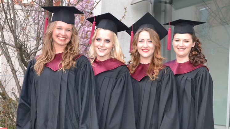 Yasmin Köhler, Management und Unternehmensführung, Karl Ewehardt (Beratung und Vertriebsmanagement) und Jenny Velosa da Silva, Management in International Management, warteten mit gleichermaßen originellen wie inhaltsstarken Statements auf. „Es war eine interessante und spannende Zeit. Wir waren echt gefordert und die diversen Prüfungen waren wirklich ,nicht ohne‘. Aber gerade als es eng wurde, kamen uns die Profs mit kompetenter Unterstützung entgegen. Während des gesamten Studiums hatten wir jederzeit großen Rückhalt und wir fühlten uns stets als Mitglieder einer großen Familie“.